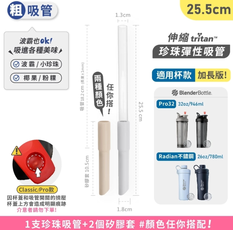 Tritan | 伸縮彈性珍珠吸管 吸管長18.2CM(總長25.5CM)