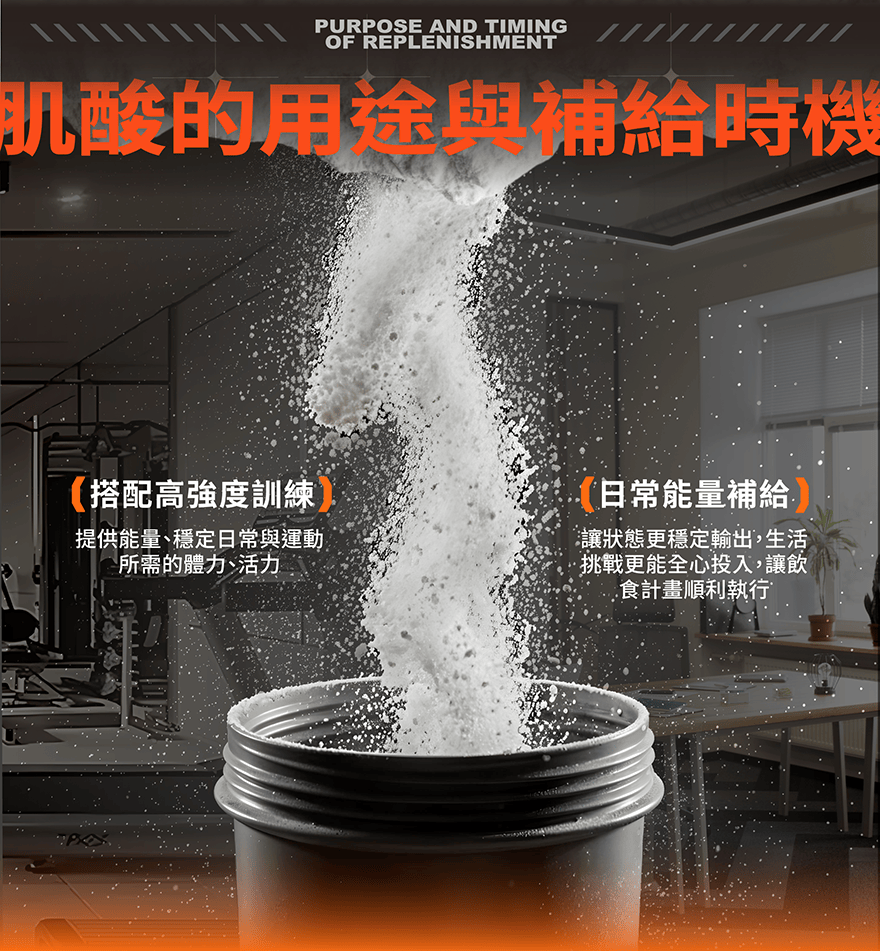 2. 也可以在訓練後飲用肌酸,並可搭配乳清蛋白