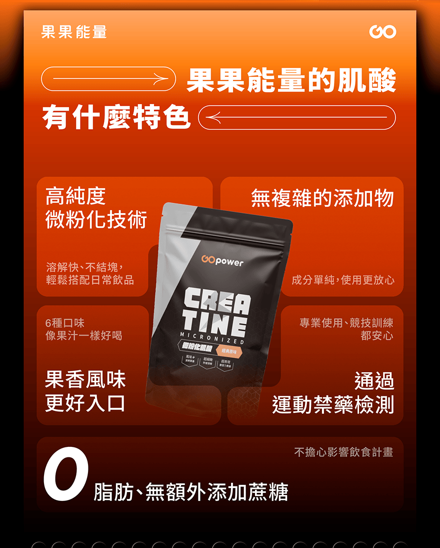 2. 微粉化技術:果果能量微粉化肌酸經過特殊處理,顆粒極細、遇水快速分散。