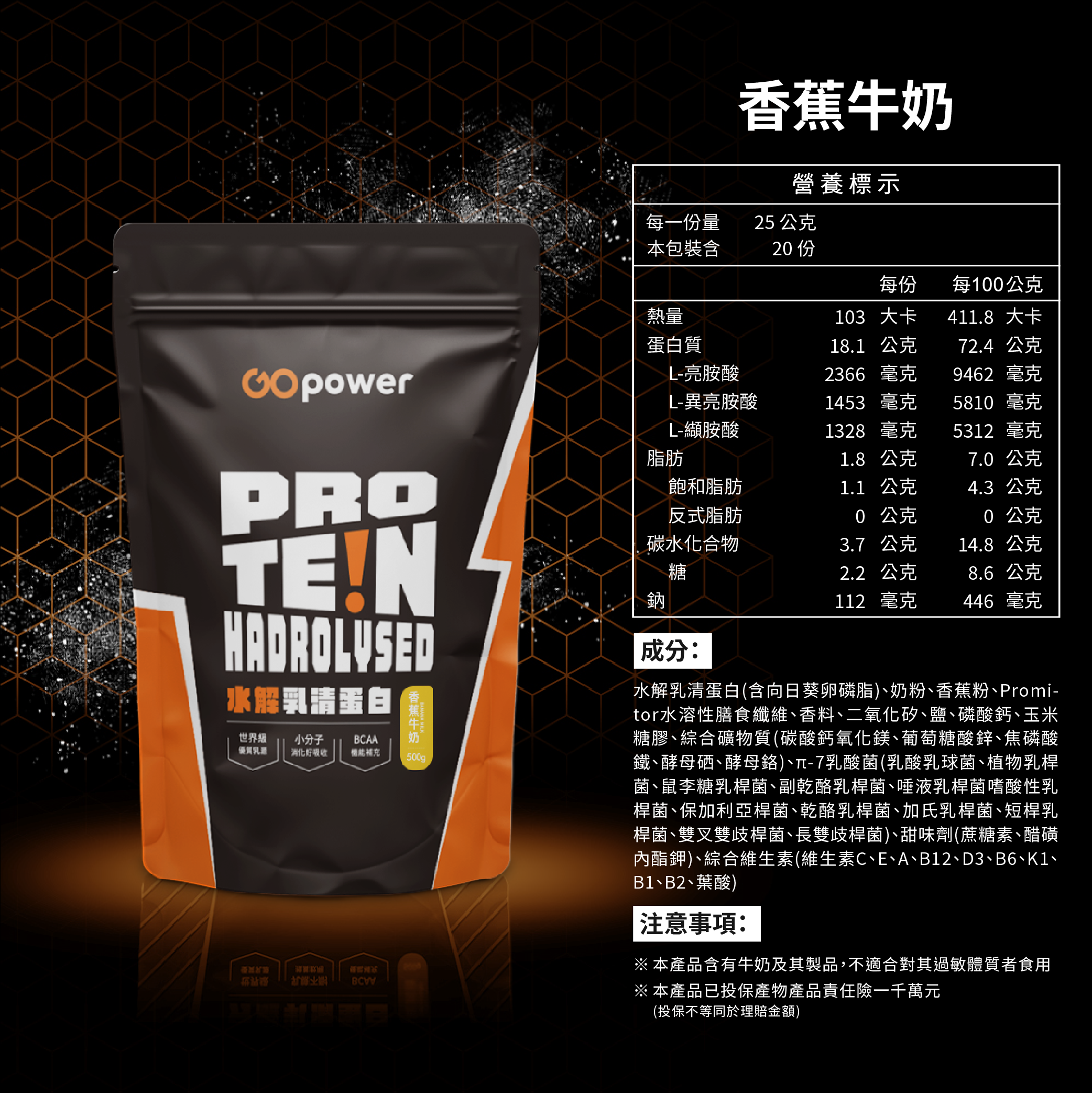 水解乳清蛋白-香蕉牛奶-500g 數量