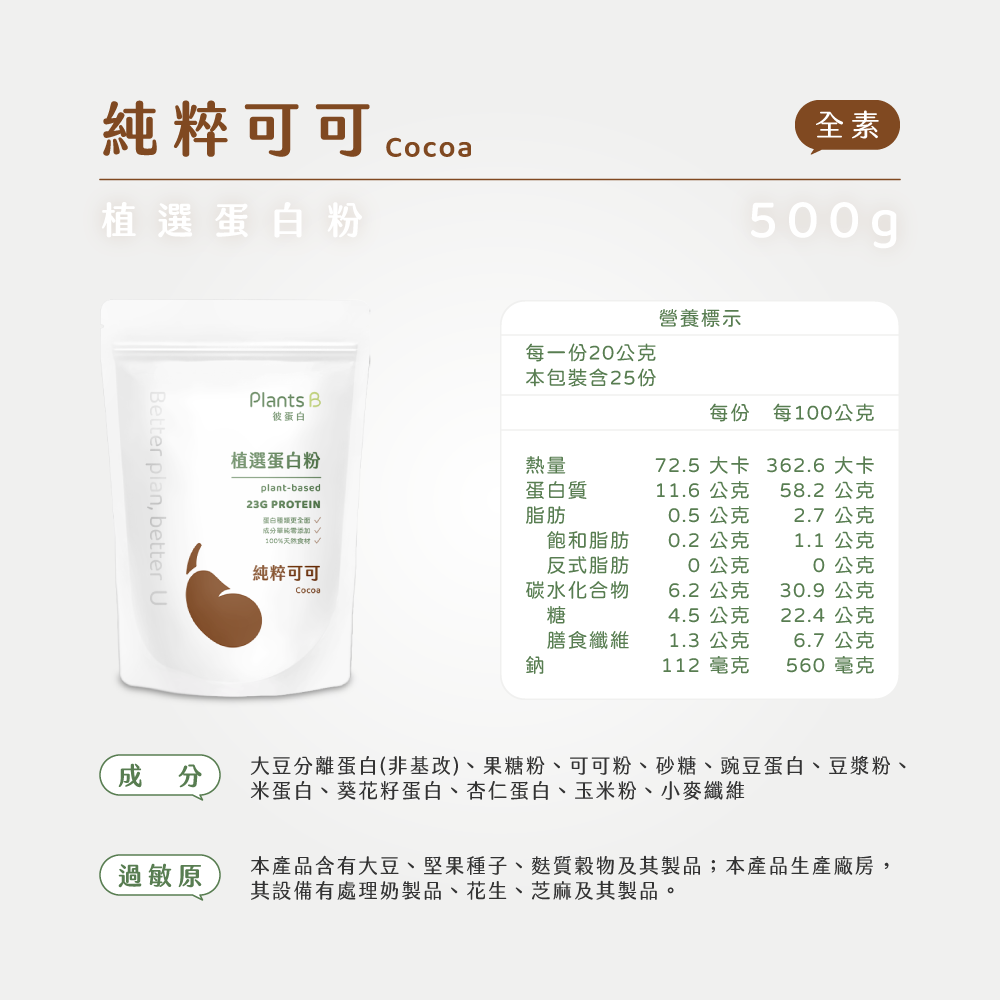/ 植物蛋白-純粹可可-500g(全素) (缺貨)