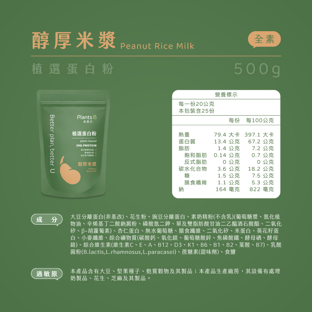 植物蛋白-醇厚米漿-500g(全素) 數量