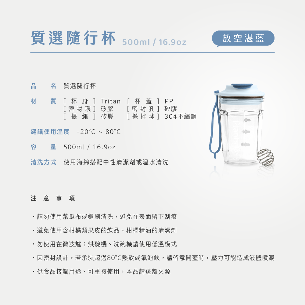 / 彼蛋白 質選隨行杯 放空湛藍 附鋼球 500ml